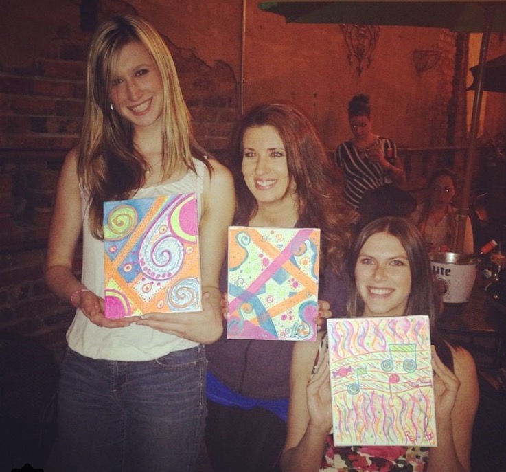 We planned on meeting up for happy hour on an outside patio with two of our other friends, and I surprised them by bringing four small canvases with four paint markers.